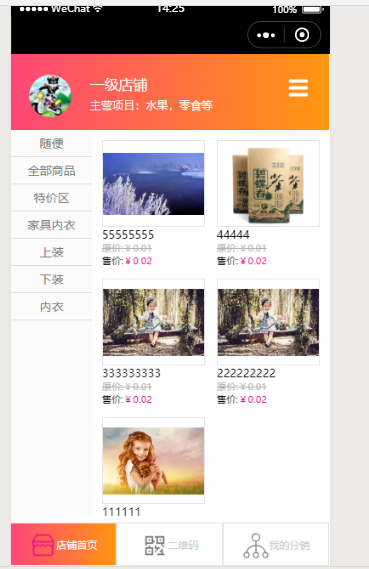 3.若需要返回到此小程序的任意页面时,点击分销店铺的导航栏即可,如图所示: